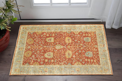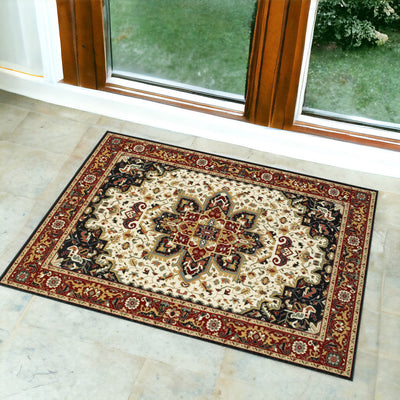 Home Outfitters 2' X 3' Red Gold Teal Grey Ivory And Blue Oriental Power Loom Stain Resistant Area Rug