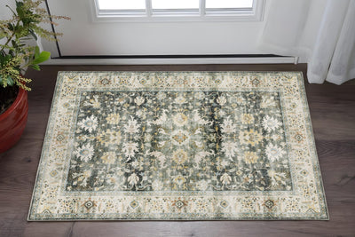 Home Outfitters 2' X 3' Silver Gray And Pink Floral Distressed Area Rug