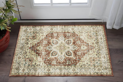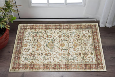 Home Outfitters 2' X 3' Red Gold Orange Green Ivory Rust And Blue Floral Power Loom Stain Resistant Area Rug