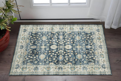 Home Outfitters 2' X 3' Ivory And Blue Ogee Distressed Area Rug