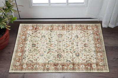 Home Outfitters 2' X 3' Ivory Blue Gold Green Orange Rust And Teal Floral Power Loom Stain Resistant Area Rug