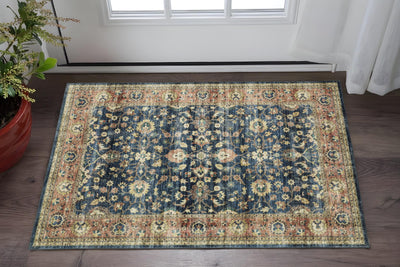 Home Outfitters 2' X 3' Blue And Orange Floral Distressed Area Rug
