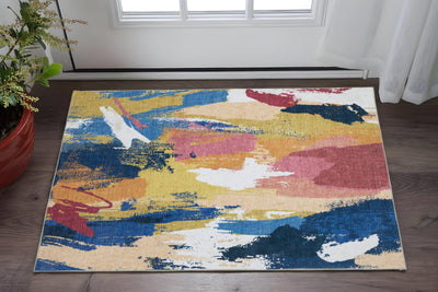 Home Outfitters 2' X 3' Beige Orange Blue Gold And Grey Abstract Power Loom Stain Resistant Area Rug