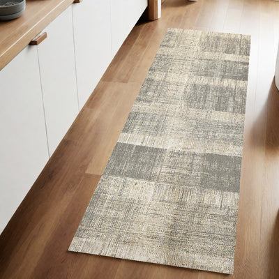 Home Outfitters 4' X 6' Charcoal Khaki And Ivory Wool Plaid Hand Tufted Area Rug