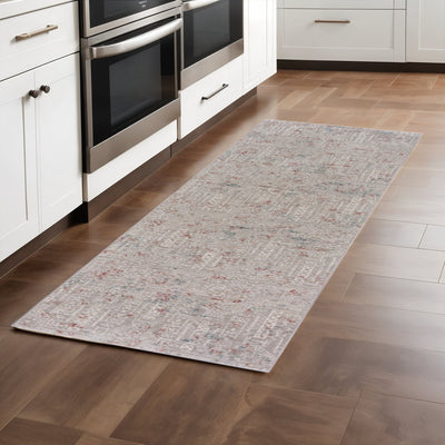 Home Outfitters 4' X 6' Pink and Blue Abstract Hand Woven Distressed Area Rug