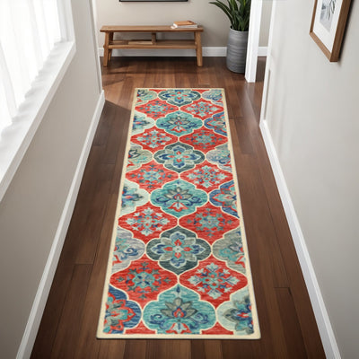 Home Outfitters 4' X 6' Orange and Ivory Floral Hand Knotted Area Rug