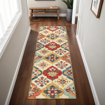 Home Outfitters 4' X 6' Ivory and Blue Wool Floral Hand Tufted Area Rug