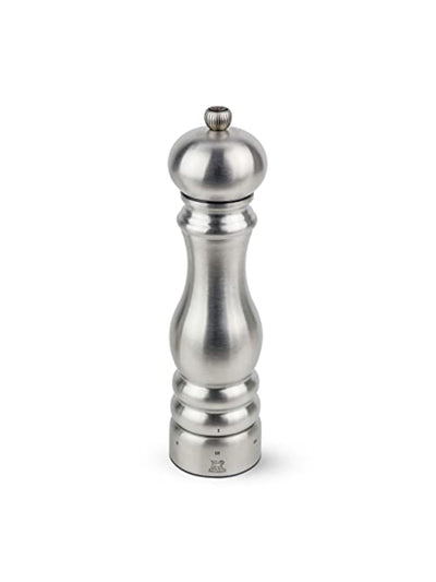Made in France, this Paris mill is classic and a representative design of Peugeot. The Paris Mill is known for its unsurpassed performance and rich culinary heritage. The stainless steel finish features high quality and conscientious aspects of this mill. The black dot on the nut represents pepper and the white one represents salt. Materials and design are suitable for demanding consumers. This product is absolutely not sensitive to heat, cold, humidity and impacts. The Unselect patented system enables precise grind adjustment settings from fine to coarse. Lifetime guarantee on the Peugeot mechanism, 5 year guarantee on the mill. Peugeot expands its Paris Mill line with its first mills in a brushed stainless steel finish, combining an upscale metallic look with an iconic shape. Like all Peugeot mills, it has an exclusive spice-specific mechanism for optimal flavor and texture. All are equipped with the patented Peugeot U-Select adjustment system, offering six pre-defined settings or anywhere in between. The Paris Mill is known for its unsurpassed performance and rich culinary heritage. PEUGEOT mills: It is often copied, never equaled, and still made in France.