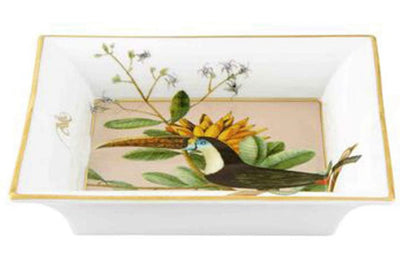 Amazonia Large Square Tray from Vista Alegre. Vista Alegre partnered with Ecoarts Amazônia to create a collection about the Brazilian rainforest, so that the world can see the Amazon through the eyes of those who know it better. The Amazonia collection is a look at the Amazon - from "Yesterday", "Today", and "Tomorrow" - from the perspective of those who know the forest closely and act for its preservation. The Amazonia of yesterday is present in the drawings of the XVIII century, realized during the "philosophical trips" of the Brazilian naturalist Alexandre Rodrigues Ferreira for the Amazon, where he collected an important collection today distributed in several museums around the world.
