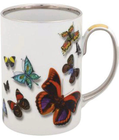 Christian Lacroix Butterfly Parade Mug is hand painted with gentle colors and modern designs. A parade of real and imaginary butterflies flying over the pieces, with notable three-dimensional effects and gold accent model a contemporary style.