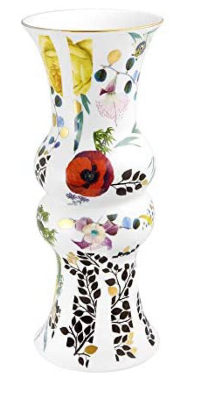 Magenta dahlias, crimson poppies and buttercup yellow pansies mingle with lush vegetation that seems to be escaping from a labyrinth of immaculate stripes. And with them, plates, serving dishes, sugar bowls and treasure boxes take on a thousand different hues. And, for the first time since their partnership began in 2013, this new Christian Lacroix Maison china collection by Vista Alegre includes a series of sculpted decorative birds. Selected from the manufacturer’s archives by Sacha Walckhoff, Christian Lacroix’ creative director, they have been mischievously turned into elegant chandeliers, salt cellars and trivets. Each piece is entirely hand-painted and accented with gold, superbly showcasing the age-old skill and expertise of the Portuguese workshops. 15.75" H X 6.4" Diameter