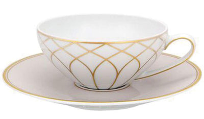 Terrace Tea Cup and Saucer from Vista Alegre. Created by the designers David Raffoul and Nicolas Moussallem, Orquestra is tableware that combines different geometric line patterns, recreating the complexity of harmony and musical rhythms.