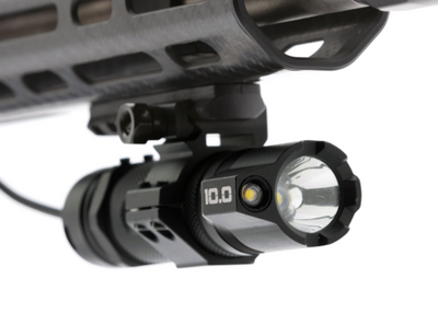 The B.A.M.F.F. 10.0 combines a powerful spot light for long distance visibility, with a wide-angle flood light for close range area lighting. These two LEDs are used simultaneously to greatly increase the user’s overall field of vision. Blast an intense spotlight on a focal point and at the same time light up the entire peripheral area.