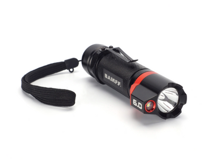 The B.A.M.F.F. 6.0 combines a powerful LED spot light for long distance visibility with a wide angle flood light for close range area lighting. These two LEDs can be used simultaneously with the DUAL LED, providing 600 lumens, increasing your overall visibility. Use either the supplied 18650 Lithium-ion 2000mAh rechargeable battery or 3x AAA batteries when recharging is not possible.
