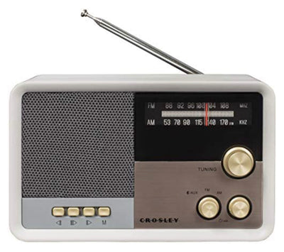 The Crosley Tribute AM/FM radio sports a clean, modern silhouette that will seamlessly fit in to a variety of decor styles. Gold knobs and buttons add a vintage vibe, while its small footprint makes it ideal for tight spaces such as a nightstand. The Tribute features an AM/FM radio, but also lets you connect wirelessly to stream your digital music thanks to its built-in Bluetooth receiver.