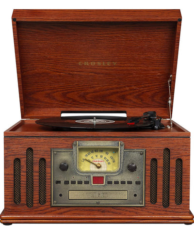 Give analog music the encore it deserves with the Crosley Musician 5-in-1 turntable. This hardwood entertainment center offers more than just a three-speed turntable. It's equipped with a CD player, cassette deck, and even an AM/FM radio. There's also built-in Bluetooth, allowing you to stream your favorite music from your Bluetooth-enabled device wirelessly to the full-range stereo speakers. The musician marries vintage style with modern technology.