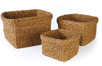 Our Sea Grass Baskets Are Made From A Material That Has Been Sustainably Harvested. Supple But Sturdy This Set Of 3 Rectangular Storage Baskets Are Dressed Up With A Rolled Cuff Trim. Drop In Your Favorite Plants, Toys Or Just About Anything, They Are The Perfect Catch All To Help Keep You Beautifully Organized. Each Piece Is Hand Woven By Artisans In Time-Honored Traditions. Interior Use Only, Dust With Soft Cloth. Do Not Clean With Harsh Chemicals.