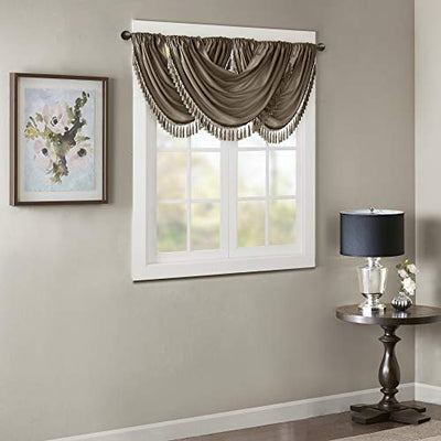 Elena Waterfall Embellished Rod Pocket Valance , Faux Silk Valances for Window , 38X46" , Bronze