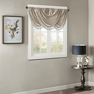 Elena Waterfall Embellished Rod Pocket Valance , Faux Silk Valances for Window , 38X46" , Champagne