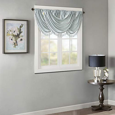Elena Waterfall Embellished-Rod Pocket Valance , Faux Silk Valances for Window , 38X46" , Dusty Aqua
