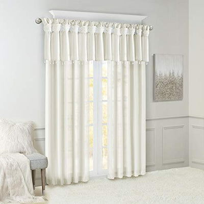 Emilia Faux Silk Valances for Windows with Beads , Elegant window valance , 50"W X 26"L , White