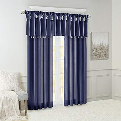 Madison Park Emilia DIY Twist Tab Top Finish Beads 1 Window Valance, 50 x 26 in, Navy
