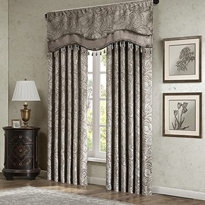 - NEW & TRENDY - The Madison Park Aubrey Beaded Valance is the perfect extra touch to your decor. The alluring jacquard weave is inspired from an updated paisley motif and is woven in beautiful hues for a shimmering accent. The window valance features solid faux silk piecing and flat piping details, while delicately finished with a scalloped bottom design and intricate bead trim, creating an intriguing elegant look. For added sophistication, it comes with back tab rod pocket to fit curtain rods up to 1.25 inch in diameter. Complete the collection with coordinating window curtains and bedding set, each sold separately.