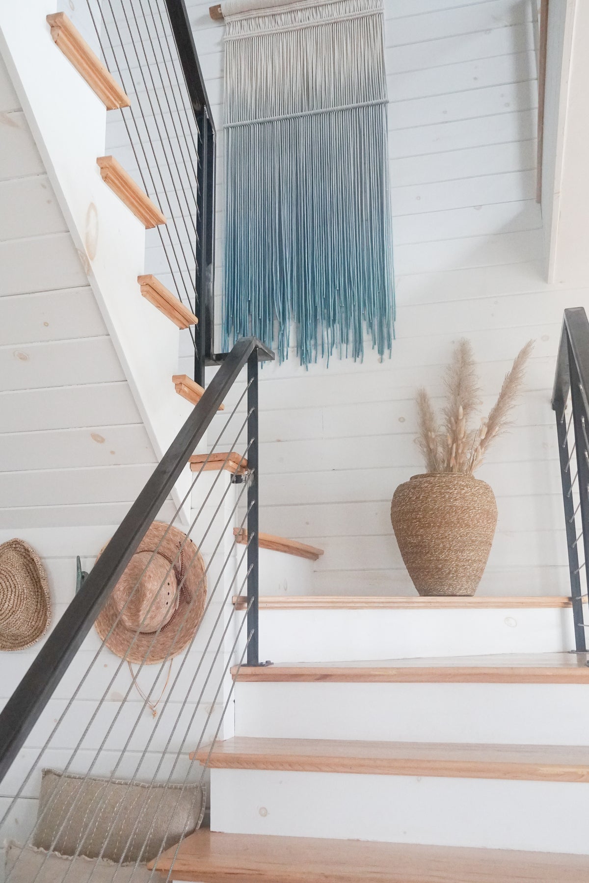 We carefully hand wrapped the seagrass rope around 3 sizes of metal jars.
