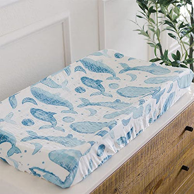 - NURSERY ESSENTIAL: Add a stylish touch to your baby's changing table with this whale printed cover designed to fit any standard changing pad mattress