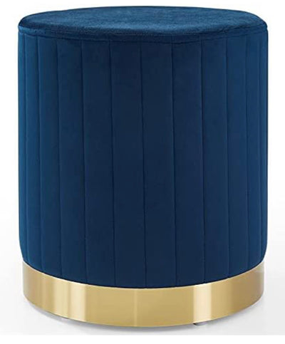 Crosley Sabrina Velvet Upholstered Pouf Ottoman in Navy and Gold