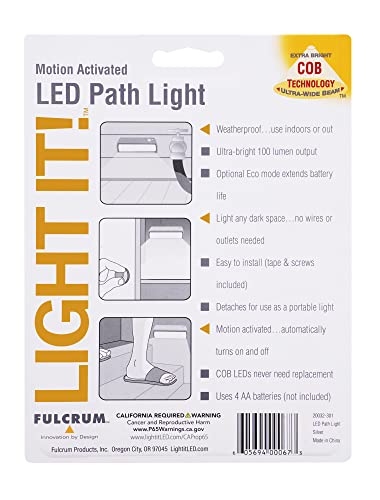 The motion sensor in this unit triggers a bright, focused beam of light. It is easy to install almost anywhere, and it easily detaches from its mounting plate to serve as a handheld light. Outdoors, it lights pathways, stairs, decks, patios, driveways, sheds, and signage. Indoors, it illuminates hallways, closets, and storage areas.