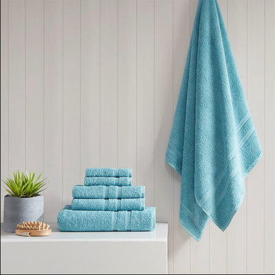 Home Outfitters Aqua 100% Turkish Cotton 6pcs Bath Towel Set , Absorbent, Bathroom Spa Towel, Casual