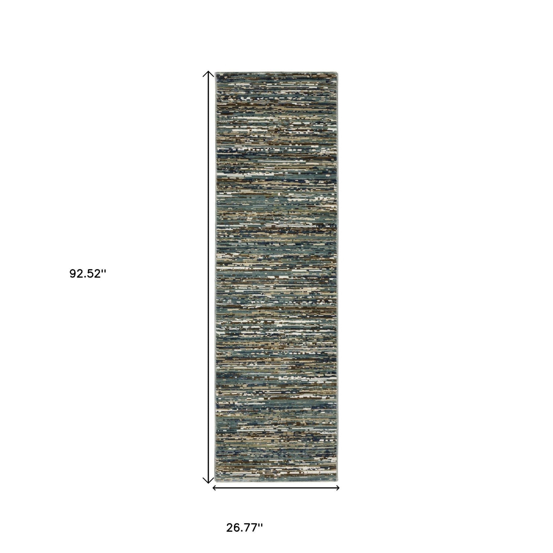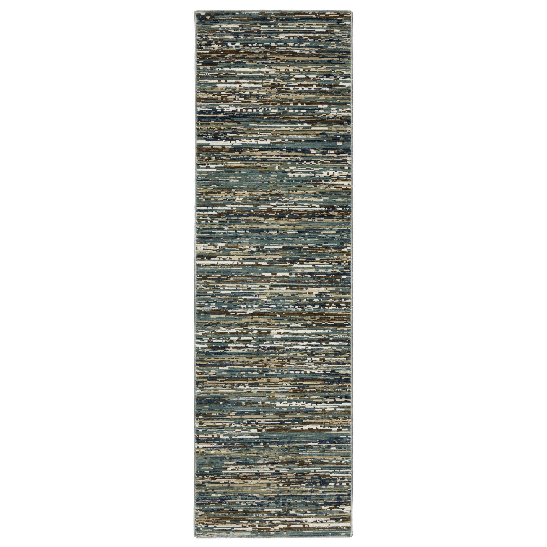 Add some artistry to your room with this 8-foot blue striped power loom runner rug. This runner shaped rug features a striped design in blue to give it visual interest. A classic shape marries with good looking design for your space ideal for spaces with kids and pets, this rug is stain resistant to help repel stains and spilled liquids. Area rugs help to give warmth and sense of home to your space. 26.77-inch H x 92.52-inch W x 0.39-inch D