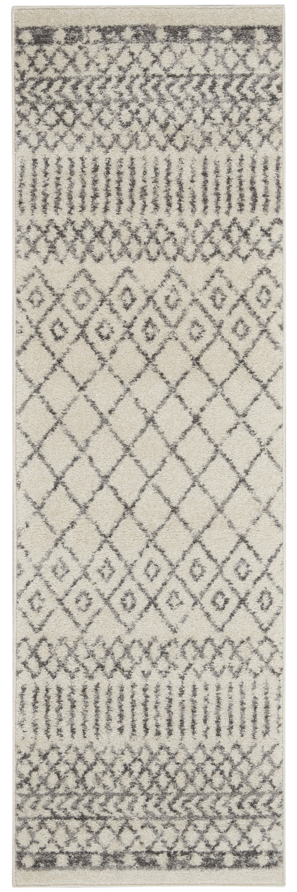 Set an inviting tone in your space with this 6-foot gray and ivory geometric distressed runner rug. Built to last, this rug crafted from polypropylene fibers is known for its durability and long lasting appeal. Rugs are a great way to showcase your style, hide imperfections, warm your home and reduce noise. This rectangular shaped rug features a abstract design that will add a functional and decorative accent to your space. This bohemian style runner makes a great accent for the hallway, in front of cabinets, in the laundry room, or any other space you need a narrow and long rug. 22-inch h x 72-inch w x 0.5-inch d.