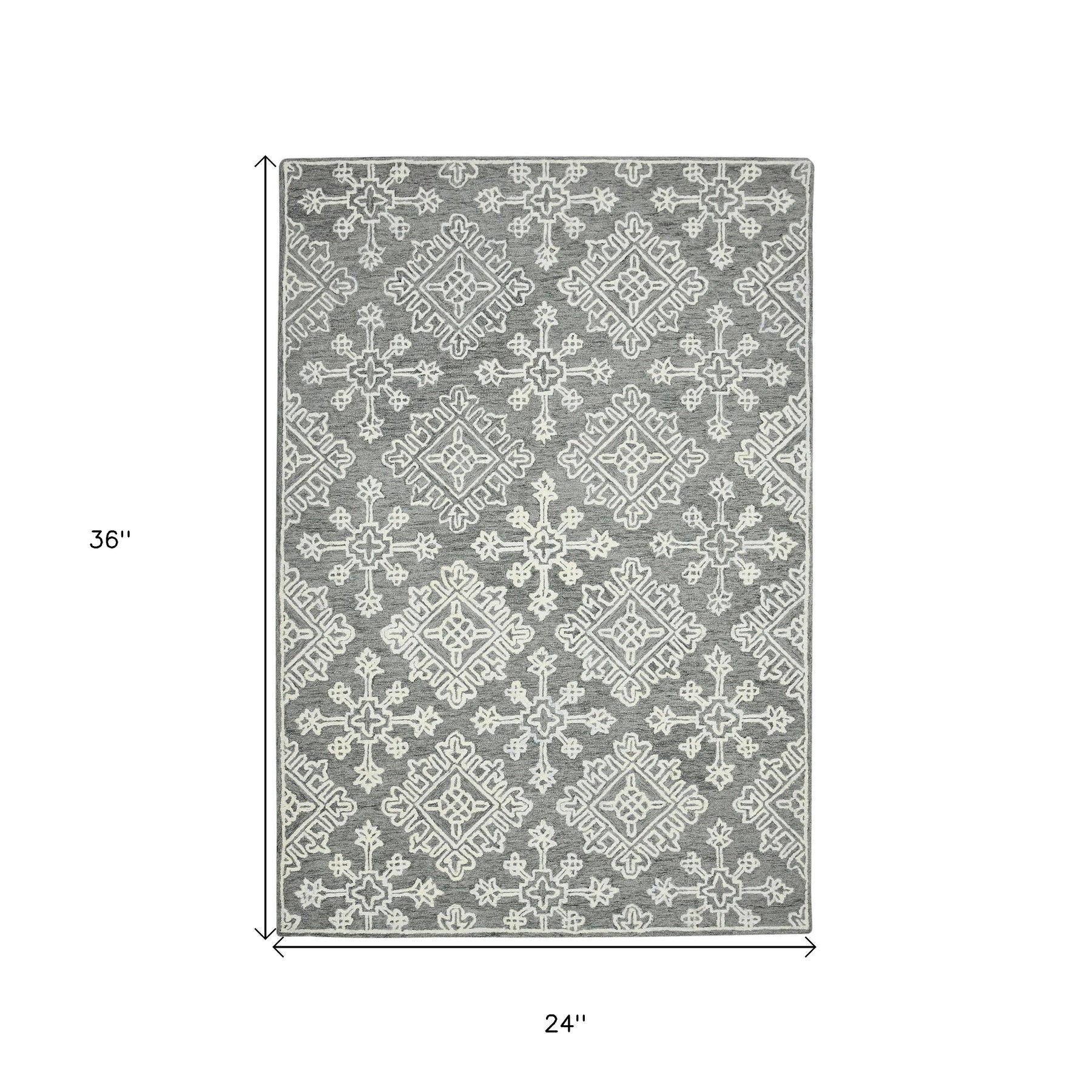 Set an inviting tone in your space with this 2-foot x 3-foot gray and ivory wool oriental hand hooked area rug. Crafted by skilled artisans, this hand hooked rug is genuine and unique. No two will be exactly alike. Rugs are a great way to showcase your style, hide imperfections, warm your home and reduce noise. This smaller sized, transitional styled rug is just what you need for your walkway, bedside, in front of door, cabinet, refrigerator, or chair. 24-inch h x 36-inch w x 0.4-inch d.