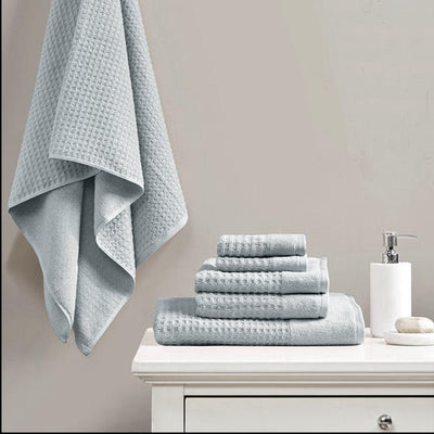 Home Outfitters Blue 100% Cotton 6pcs Bath Towel Set , Absorbent, Bathroom Spa Towel, Modern/Contemporary