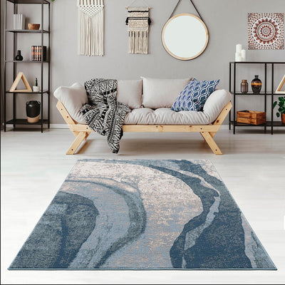 This area rug features a soft, medium pile with a blue wave pattern to create a soft and chic contemporary look. A transparent sprayed latex reverse helps prevent the rug from sliding, but a rug pad is still recommended to keep it in place. Machine woven with a cut pile construction, this modern abstract rug is well suited to high-traffic areas and brings a dramatic charm to your living space. Rug pad is sold separately. Use a vacuum to clean