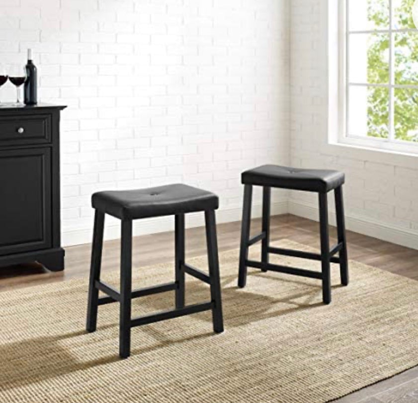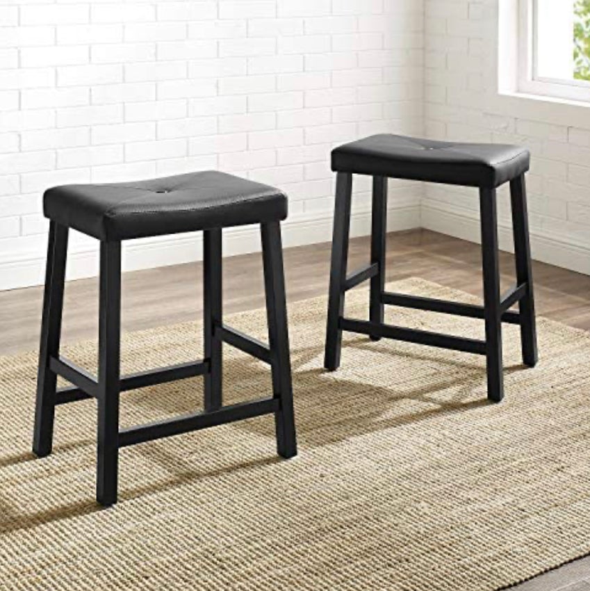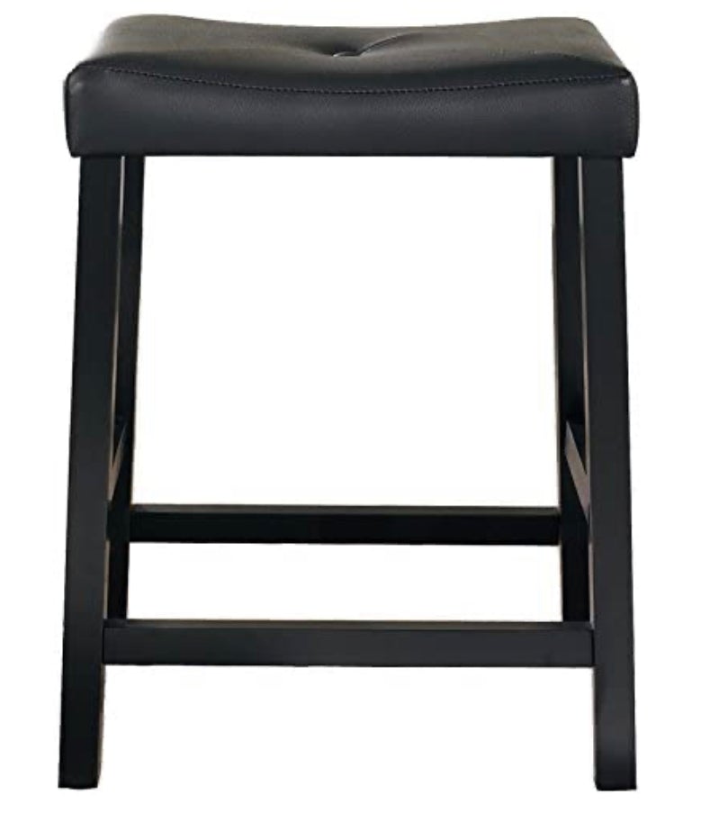 Home Outfitters Upholstered Saddle Seat Bar Stool (Set of 2), 24-inch, Black
