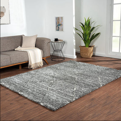 This machine woven, plush rug features a super soft high pile with a grey and cream diamond trellis pattern for a modern and stylish update. Tassel detailing adds rich texture and an artisan touch, while a sprayed transparent latex reverse helps prevent the rug from sliding making it well suited for high traffic areas. Easy to clean with a brushless vacuum or by spot cleaning, while also stain and fade resistant - this shag area rug is the perfect update for a cozy yet fresh update. This shag area rug is OEKO-TEX certified, meaning it does not contain any harmful substances or chemicals to ensure quality comfort and wellness. Available in multiple colors and sizes, this rug is perfect for any living room, family room, and or other room decor. A rug pad is highly recommended to keep the rug more secured in place; Rug pad sold separately.