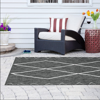 ‚ Global inspired indoor/outdoor area rug flatweave with Moroccan pattern‚ Made in Turkey‚ Durable area rug that will withstand rain, sun, snow, and dirt‚ Stain and fade resistant, easy to clean with a garden hose‚ Flatweave and textured pile height less than 0.25 inch‚ Select 5x7, 8x10 or runner size‚ 100% polypropylene