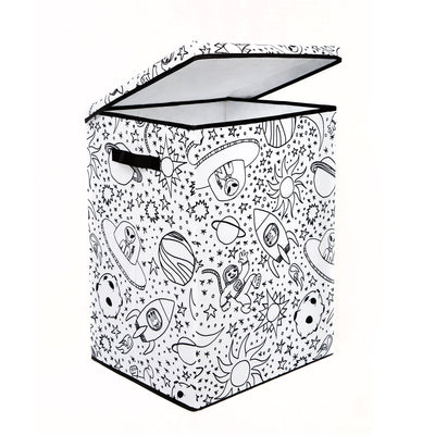 Home Outfitters ™ Kid'S Coloring Lidded Hamper W/ 4 Pack Of Washable Markers - Space Print Great for Bathroom, Laundry, Kids Room, Storage, Closets 16.9" X 16.9" X 22.8"