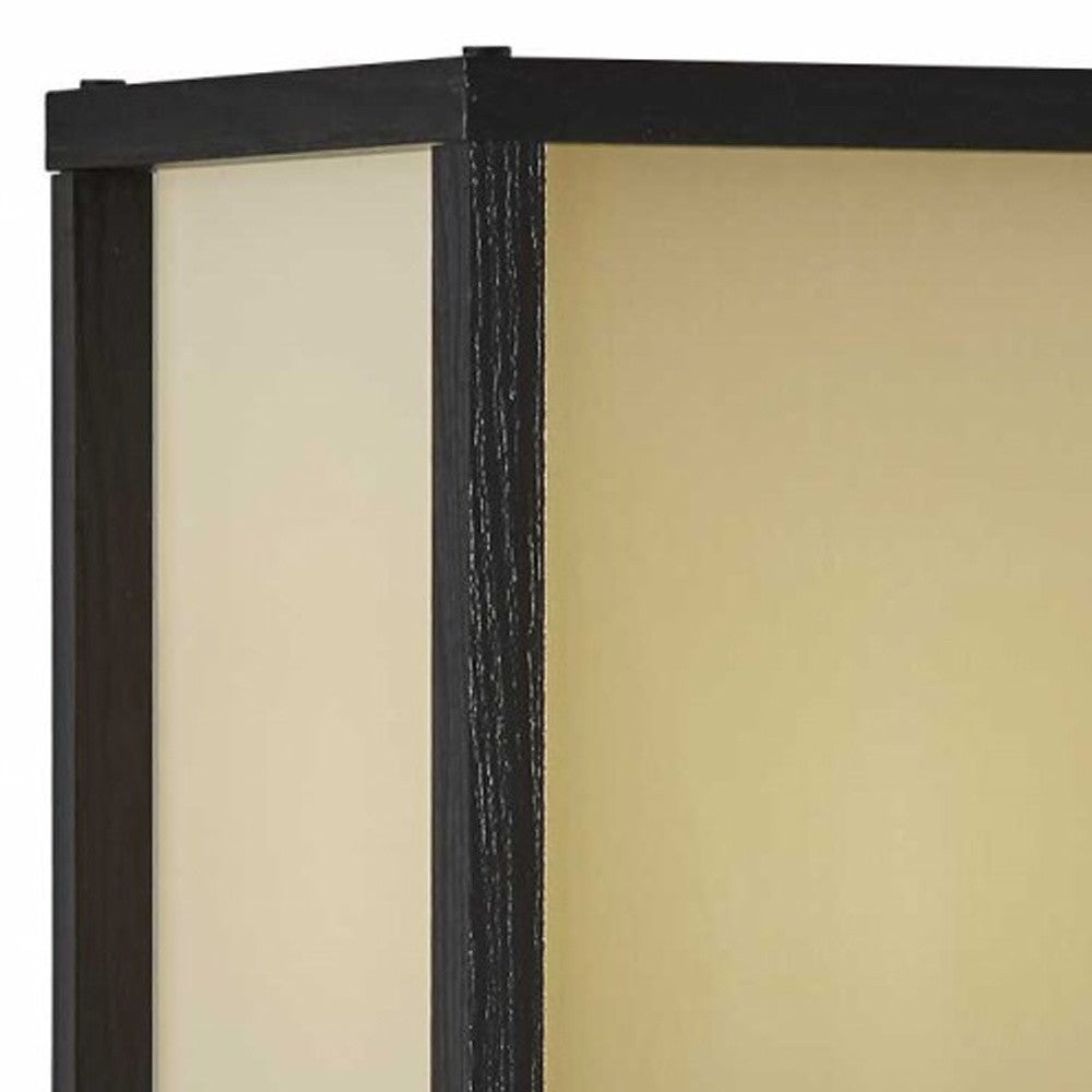 Have it all with high style and multi-function. This shelf floor lamp feature a black walnut wood open box frame with two additional display/storage shelves, making it a handy addition to the living/media room, den, office, or bedroom. The collapsible poly/cotton shade diffuses light from a 150 Watt incandescent or equivalent bulb. The lamp has on/off functionality with a metal ball accented pull chain switch. This lamp has a clear cord and is smart outlet compatible. Bulb is not included.