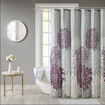 Home Outfitters Purple Print Floral Shower Curtain 72"W x 72"L, Shower Curtain for Bathrooms, Transitional