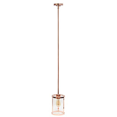 Lalia Home 1-Light 9.25" Modern Farmhouse Adjustable Hanging Cylindrical Clear Glass Pendant Fixture with Metal Accents, Rose Gold