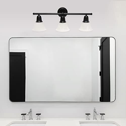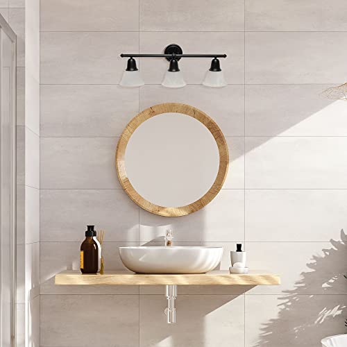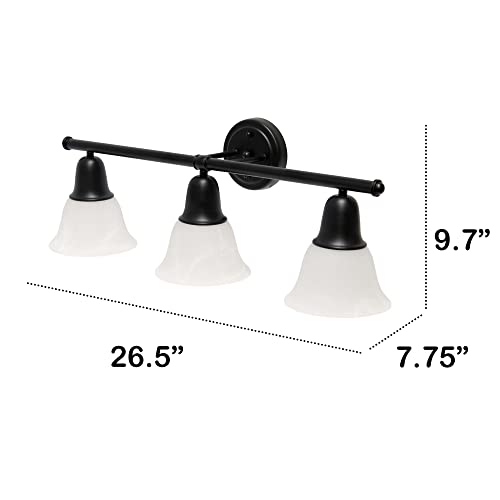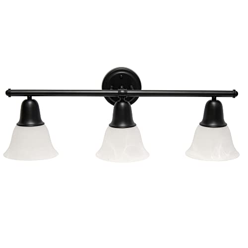 Lalia Home Essentix Contemporary Three Light Metal and Alabaster White Glass Shade Vanity Uplight Downlight Wall Mounted Fixture with Metal Accents