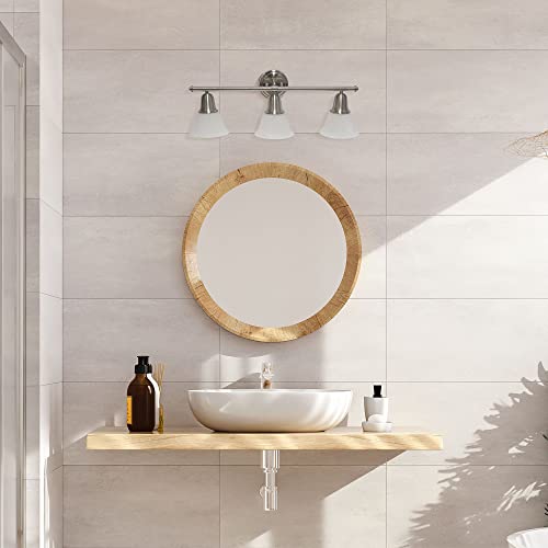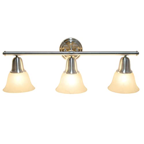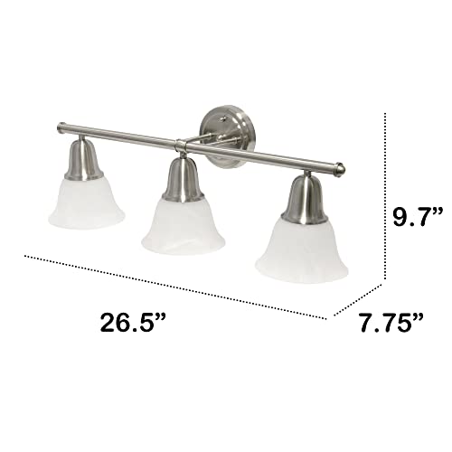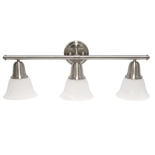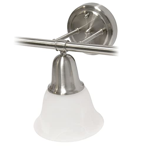 Lalia Home Essentix Contemporary Three Light Metal and Alabaster White Glass Shade Vanity Uplight Downlight Wall Mounted Fixture with Metal Accents