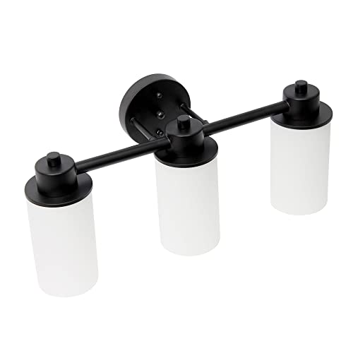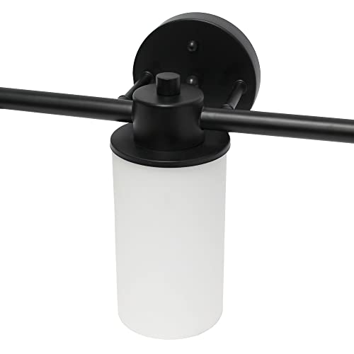 Lalia Home Essentix Contemporary Three Light Metal and Opaque White Glass Shade Vanity Uplight Downlight Wall Mounted Fixture with Round Backplate