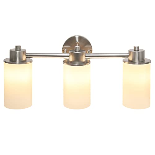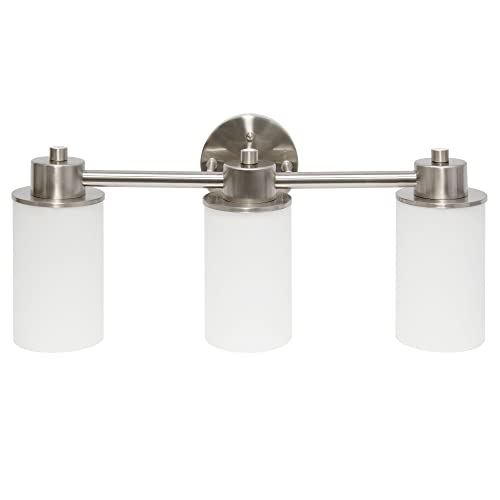 Lalia Home Essentix Contemporary Three Light Metal and Opaque White Glass Shade Vanity Uplight Downlight Wall Mounted Fixture with Round Backplate