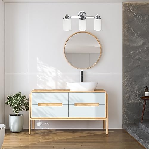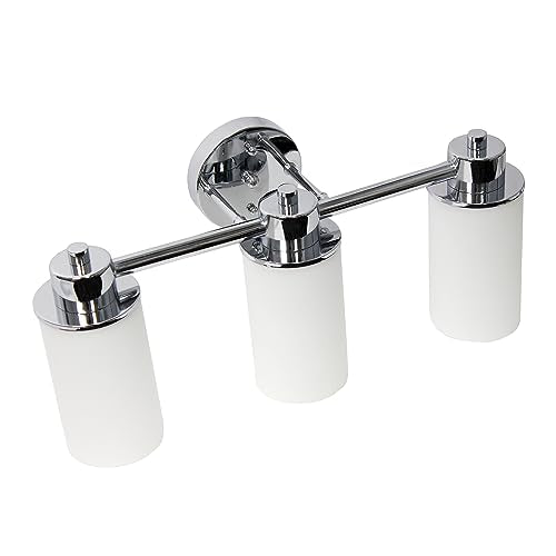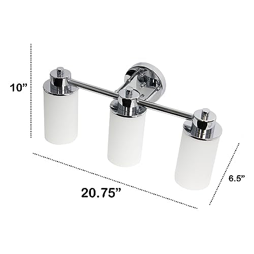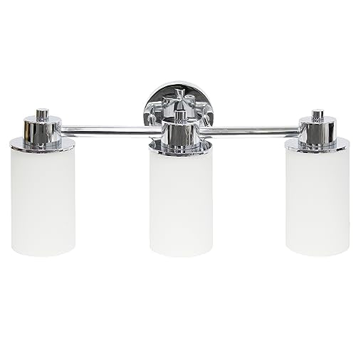 Lalia Home Essentix Contemporary Three Light Metal and Opaque White Glass Shade Vanity Uplight Downlight Wall Mounted Fixture with Round Backplate