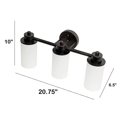 Lalia Home Essentix Contemporary Three Light Metal and Opaque White Glass Shade Vanity Uplight Downlight Wall Mounted Fixture with Round Backplate
